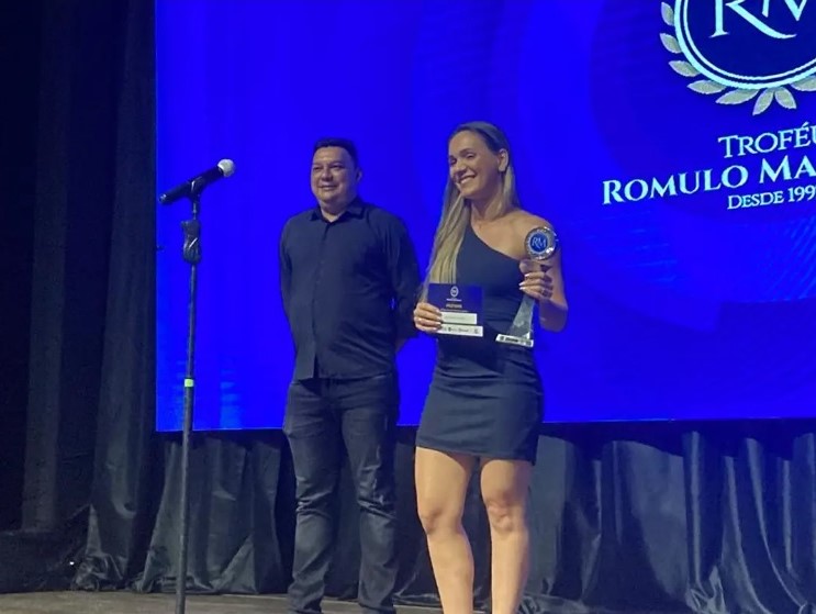 Troféu Romulo Maiorana 2023 Elias Oliveira dos Santos vence no atletismo. Parabéns! Kalitha Destro recebe o prêmio por ele, pois o atleta está disputando uma competição em Bogotá.